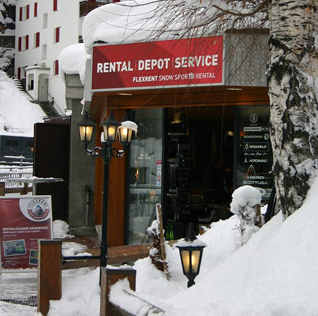 It doesn’t matter where you are staying in Zermatt, FLEXRENT is the most convienient winter sports rental shop in the village. We are located across the street from the Sunnegga lift station and offer all of our guests a complimentary overnight ski/board & boot storage.